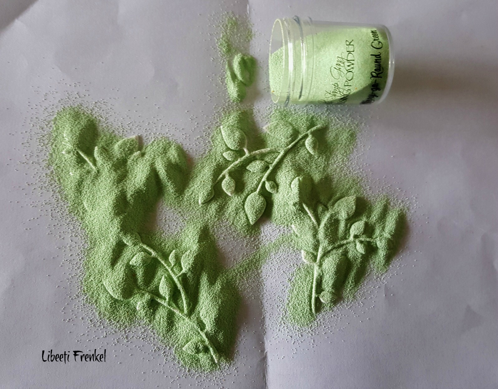 As for the big flower, after stamping it, I stamped the upper layer once again, this time with embossing clear ink, and heat embossed it once with Lindy's Desert Moon Turquoise ep, and then with Purely White ep. I really love the way it turned up!