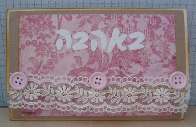 כרטיס ברכה שהוא בעצם מעטפה ובתוכה תג/שובר מתנה, שהכנתי לפי ההדרכה הנפלאה של הניק זיקוקית תפוס, כאן. האותיות מאחור הן 'תוצרת הארץ' של רחלי גזית ומסטיקים.
